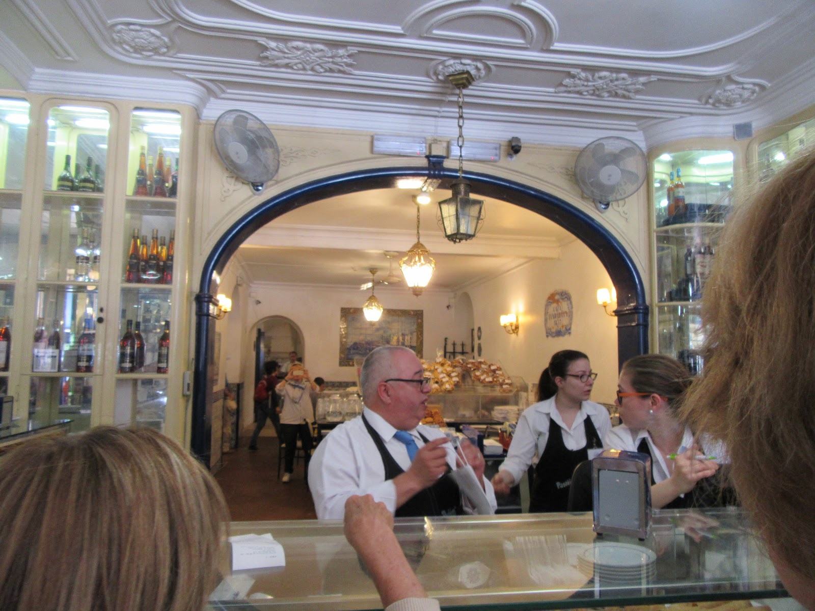 So Dan and I pass by pastelaria after pastelaria, those wonderful little cafeteria-type shops where you can get a sandwich, a plate of ham, sixty different pastries and a bottle of port or a 3 euro glass of wine, wondering which one we should pick that will house four adults and three children comfortably. The answer is none of them, because they all have a maximum of three tables and zero patrons.